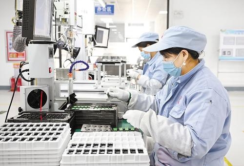 近日,河北初光汽车部件有限公司工人在生产汽车电子部件。本报记者 史晟全摄